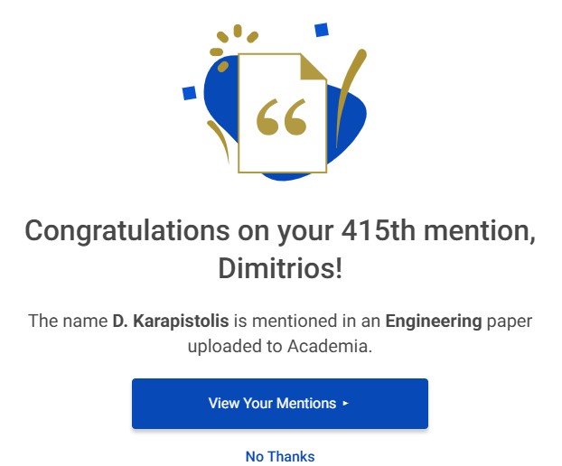 Η εργασία "Stalidis, G., Karapistolis, D. and Vafeiadis, A., (2015). Marketing decision support using Artificial Intelligence and Knowledge Modelling: application to tourist destination management. Procedia-Social and Behavioral Sciences, 175, pp.106-113.https://doi.org/10.1016/j.sbspro.2015.01.1180" ως 1η μεταξύ των δημοσιευμένων εργασίων που αφορούσαν την χρήση της Τεχνικής Νοημοσύνης στα πλαίσια των εφαρμογών ΑΙ στο Μάρκετινγκ, δικαιώνει τον Καθηγητή Δ. Καραπιστόλη ως Επιστημονικό Υπεύθυνο του Project DANKMAN που την εφάρμοσε για 1η φορά σε συνδυασμό με τις μεθόδους Ανάλυσης Δεδομένων του λογισμικού M.A.D ΕΔΩ |